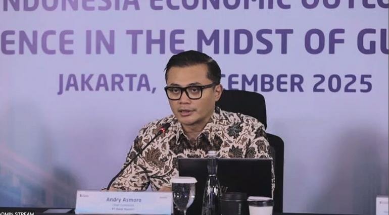 “Maka, pertumbuhan ekonomi Indonesia di akhir tahun berada di kisaran 5 hingga 5,1 persen, dan mencapai 5,2 persen pada tahun 2026,” kata Chief Economist Bank Mandiri Andry Asmoro dalam acara Mandiri Macro and Market Brief 4Q25 Indonesia Economic Outlook : Building Resilience in The Midst of Global Turbulence secara virtual, Rabu (3/12/2025).